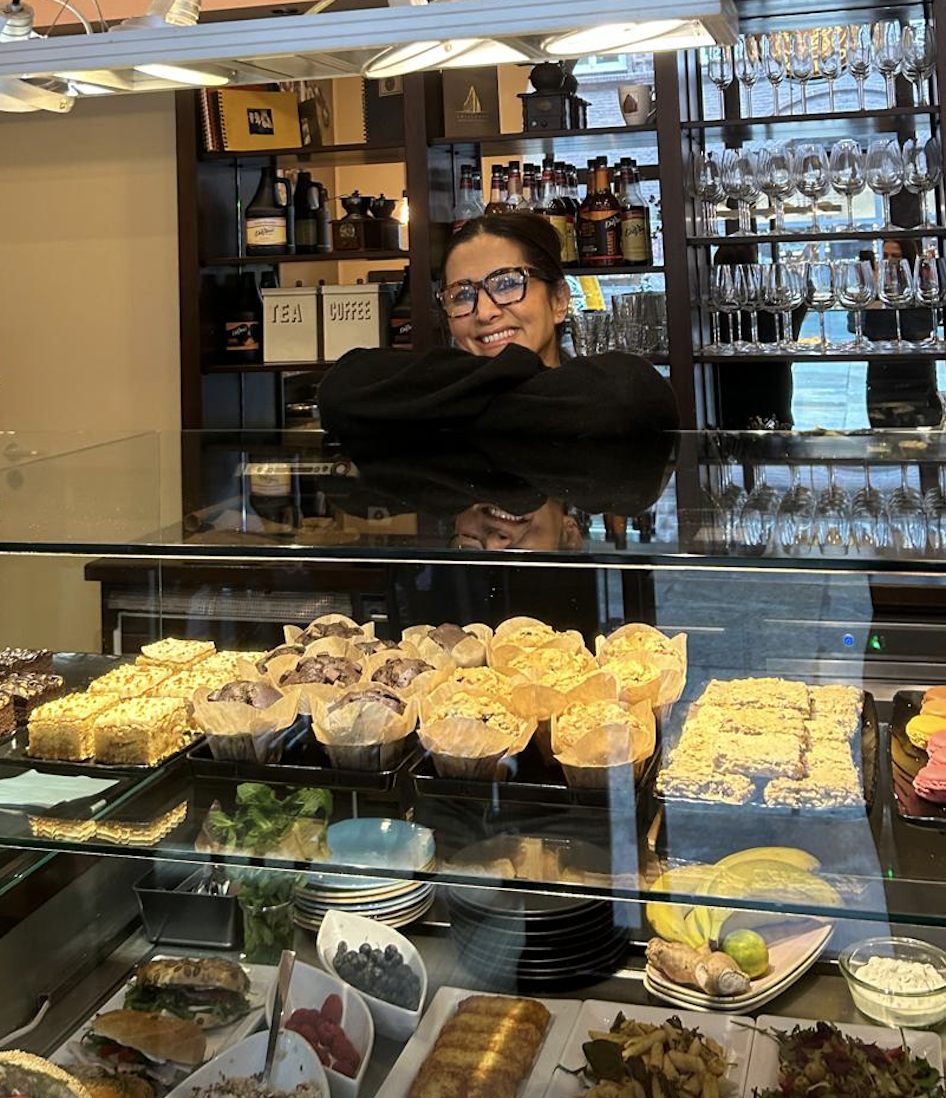 „Ich mag nichts, was mit der Zeit abläuft. Ich mag zeitlose Sachen“, sagt die 50-Jährige. Deshalb gibt es hier keinen Matcha und andere Foodtrends, stattdessen zeitlose Klassiker. „Ein Blueberry Muffin bleibt ein Blueberry Muffin. Das hast du vor 20 Jahren bekommen, das kriegst du auch in den nächsten 20 Jahren. Ich möchte Nachhaltigkeit und Zeitlosigkeit bewahren und nicht das, was jetzt gerade in ist, weil das kann morgen aus sein“, fügt sie hinzu. Selbst die Möbel, das Logo und sogar die Fensteraufschrift haben sich seit der Eröffnung vor 25 Jahren nicht verändert. Alles sieht noch so aus wie damals und wirkt trotzdem wie neu. Die Polster wurden erneuert, die Dinge gepflegt, nicht ersetzt.